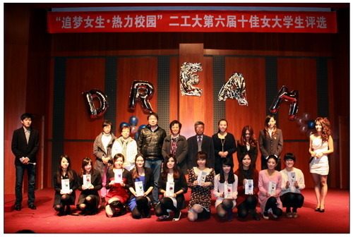 本次评选活动于10月中旬启动,得到各学院高度重视和积极参与。校团学联女生部在校妇委和团委的指导下,通过制作展板、张贴海报、校园广播、汇编事迹和集中宣传等手段,对候选人事迹进行多方位宣传。并利用人人网和微博开设投票窗口,扩大评选影响力。同时,还邀请了在校的历届“十佳”女生和候选人进行了座谈,交流成长感悟。评选活动不仅是这些女生展示的舞台,更是当代大学生一种超越自我的信念和追求梦想的执着的集中体现!