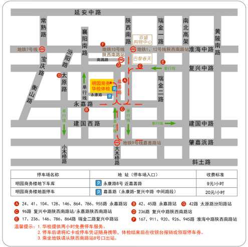 1.路面沿线停靠,付费后可将凭证在体检中心前台登记时报销2小时停车费用,超时费用自理。