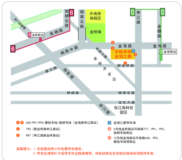 交通线路:公交630、991、993、蔡陆专线、施崂专线(金海路申江路站)等均可到达,地铁6号线金桥路站可换乘777路、991路、993路、施崂专线到达,地铁12号线金海路站可换乘630、993路到达。