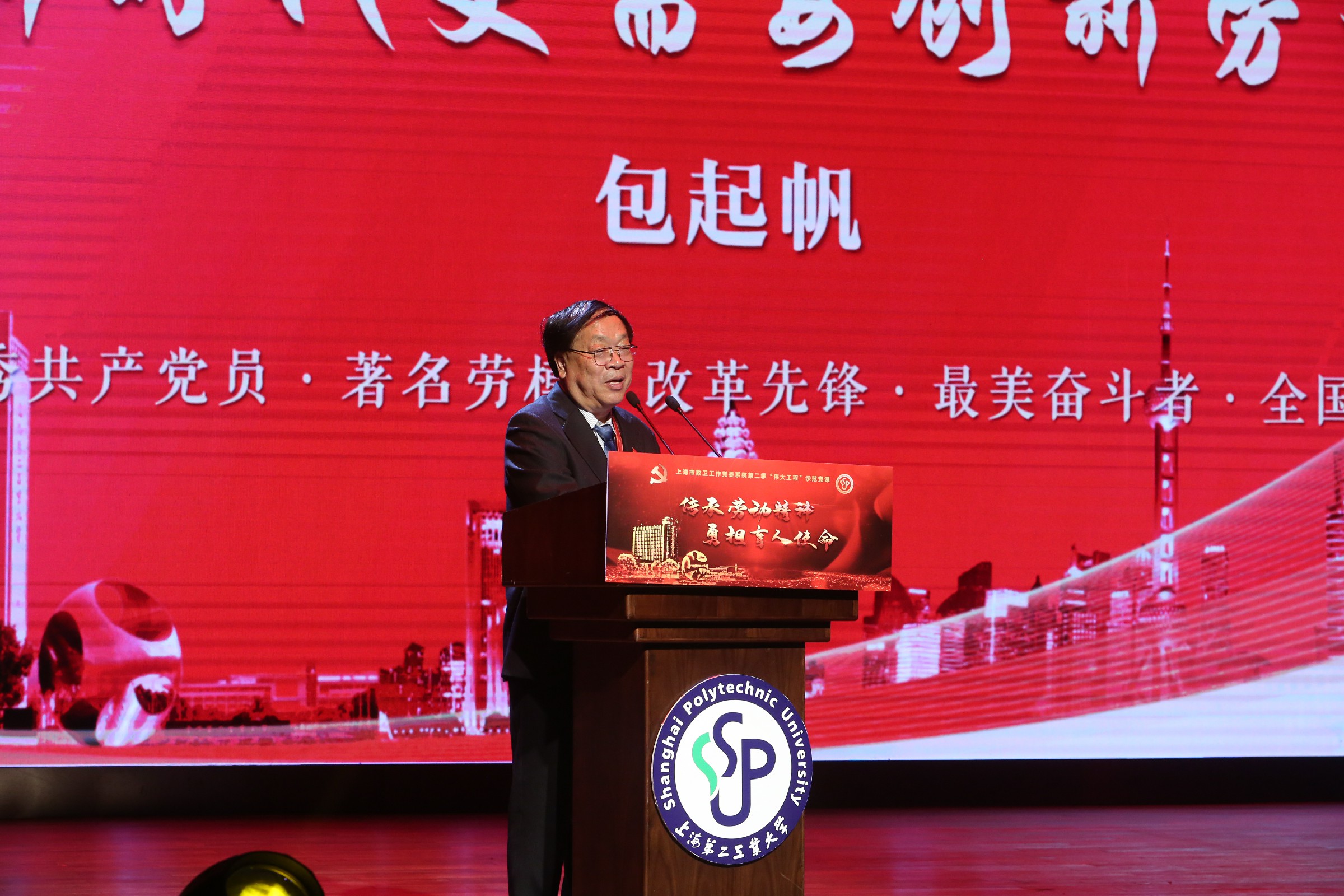 在“勇担使命育人路”第三篇章,改革先锋、最美奋斗者、全国著名劳模、全国优秀共产党员、二工大杰出校友包起帆走上讲台,通过“新时代更需要创新劳动”的主题演讲,生动讲述了他主导定制国际标准的案例。他深刻体会到,没有国际标准引领,就无法将中国创新推广至全球;为此,他脚踏实地、不断学习、立足本职、坚持创新,展现了一名优秀共产党员的高尚品德。