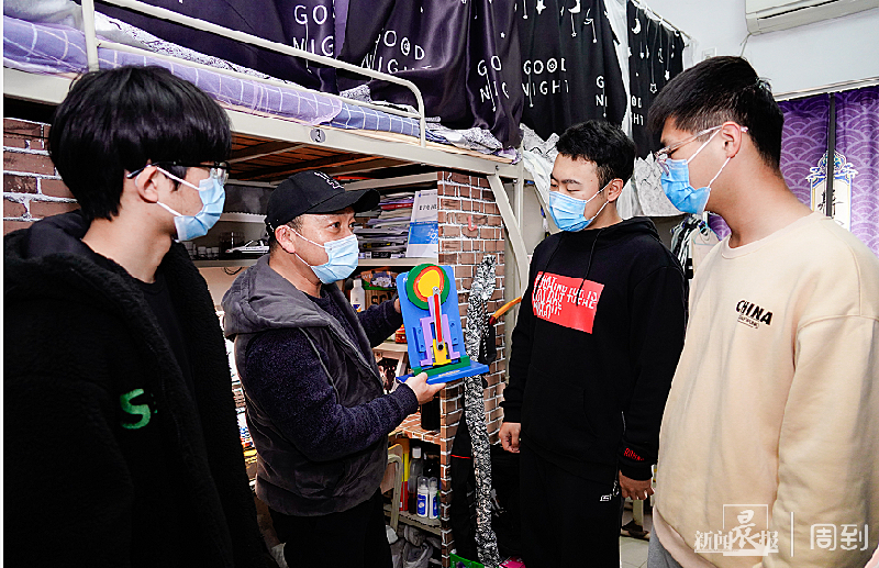 这是上海电机学院临港校区26宿217寝室的一堂现场教学课,主讲的老师是《机械工程基础》这门课的任课教师卞一明。