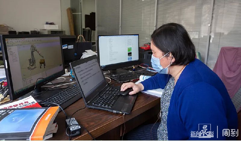 自动化系胡志华老师为了进一步提升线上课堂教学效果,在给本科生上《工业机器人技术》这门课时,充分利用虚拟仿真技术,让学生身临其境,课堂更加生动有趣。胡志华老师还利用坚守在学校的机会,线上线下指导学生参加一系列竞赛,每天安排得满满当当。