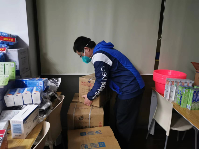 资产与实验室管理处王喆老师下沉到合庆镇庆利居委,负责物资领用、整理分配等工作,为小区居民落实“足不出户”的防疫要求提供坚实的后勤保障。“小区总体情况较好,居委很好地履行职能顺利开展工作,已经形成了比较顺畅的管理模式。在战‘疫’的关键时刻,我们更要用心用情守护社区,关怀关爱好每一位居民。”王老师说。晚上,在结束了一天忙碌的工作之后,王喆还经常随同居委工作人员一起上门看望慰问社区的困难家庭,送上蔬果、牛奶等生活物资,也送上居委的暖心问候和细心关怀。