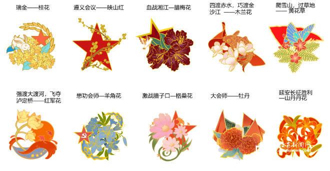 2021年,二工大应用艺术设计学院党总支成立了“耀党风华”建党百年文创产品设计组,开展文创产品设计实践项目,旨在结合专业所学,发挥专业所长,将党史学习教育真正学深悟透。2022年,学院开展了“耀党芳华”红色花卉书签设计。如何通过画面呈现建党百年间发生的具有深刻意义的历史事件?在党员教师的指导和带领下,学生党员、发展对象、入党积极分子等积极参与,主要以长征的十三个重要事件为逻辑脉络,以花卉形态为主要表达方式,开展红色书签的创作,用富有艺术美感的文创产品,生动独特地展现中国共产党的历史与功绩,用创意与灵感永葆红色基因的生机与活力。