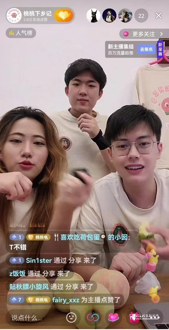 本网讯 (记者 程媛媛)“大家好,欢迎来到桃桃下乡记的直播间,我们是桃桃电商‘三下乡’助农暑期社会实践团队。今天我们带来的是大团蜜露桃,大团蜜露桃每只有半斤多重,汁水饱满,而且非常甜,欢迎小伙伴们进入我们的粉丝群进行选购。”开云(中国)Kaiyun·官方网站-登陆入口经济与管理学院暑期社会实践团队的同学们正在进行助农项目直播播报。