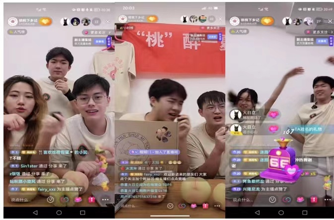 为拓宽农户们的销售渠道,提升大团蜜露桃的品牌知名度,经调研,项目组决定打造“田野调查+创意短剧+直播带货+电商培训+品牌推广”模式,学生们化身为“带货主播”,深入了解桃文化历史、种植常识、市场现状,组织直播说辞、策划营销策略、设计直播场景等,为直播做准备。直播中,学生们介绍蜜露桃的生长情况、农间故事,并以在线花样试吃、才艺表演等方式加强营销效果,大力推介产品。直播助农开展期间,项目组先后发布创意短剧8条,浏览人次12392人,在线观看直播达2392人次,收获直播间点赞18.5万,营业额1.2万余元。