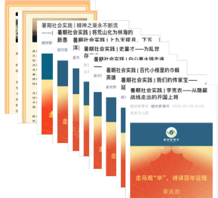 学生们还创建了团队公众号——能材新青年,将前期探寻的成果以推文形式进行发布,并以“朗读者”的身份开发系列有声读物,分别从英雄人物、红色会址、革命精神等方面讲述党的百年发展历程,音频累计收听人数达千余人次。此外,项目组成员还用青年人时下最流行的主流媒体直播方式,将前期拍摄的走访视频制作成微视频,带领观众以第一视角云游览十座城市的标志性景点。