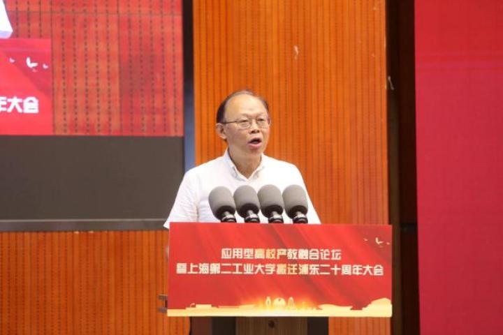 上海市教委高教处处长束金龙受市教委副主任毛丽娟委托在会上讲话。他指出,二工大搬迁浦东二十年来,办学层次不断提升,取得了跨越式发展,学校所取得的发展成就离不开浦东新区的大力支持。面对上海高等教育发展所面临的新机遇、新挑战,他就学校的发展提出三点期望:希望学校以“高地大”建设为引领,以高质量、特色化发展为根本遵循,进一步融入地方区域社会经济发展;聚焦浦东制造业发展需求,对接新区硬核产业,进一步提升人才培养质量;进一步深化产教融合,打造职教师资培养培训新高地,谱写高水平应用技术大学发展新篇章。