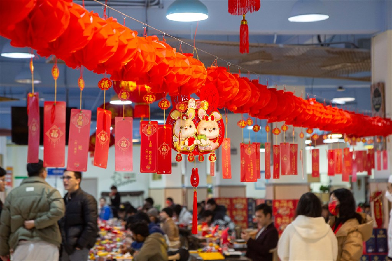 东方网记者傅文婧1月21日报道:火红的春联,喜庆的灯笼,兔年新春将至,上海各高校的校园里“年味儿”十足。美味大餐、贺年礼物、年俗游戏、校园春晚……丰富多彩的活动让留校过年的学生也能感受到家的温暖。