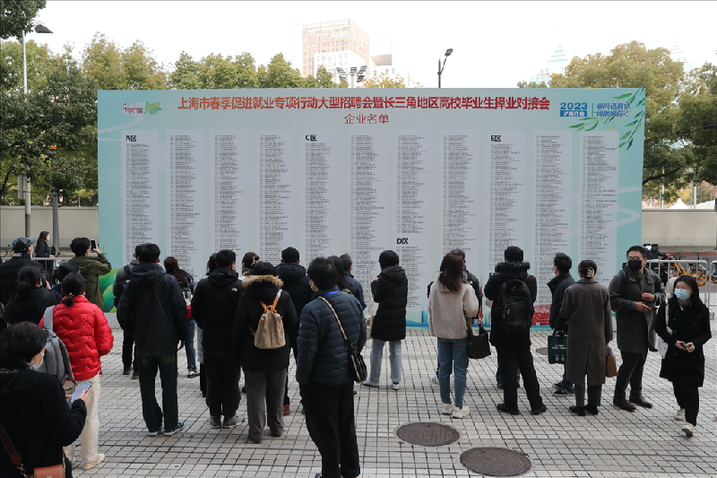 东方网记者王旭、傅文婧、刘晓晶2月25日报道:2020年以来上海市最大规模的线下招聘会来了。今天上午,“2023年上海市春季促进就业专项行动大型招聘会暨长三角地区高校毕业生择业对接会”举行,上海世贸商城成为全城关注的焦点。