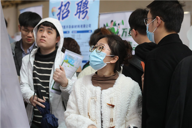 招聘会现场,毕业生们手持多份简历,积极与用人单位交流,了解单位的发展前景、岗位设置、薪酬待遇及入职后发展规划等,并向用人单位充分展现自己的专业学识和综合素质。