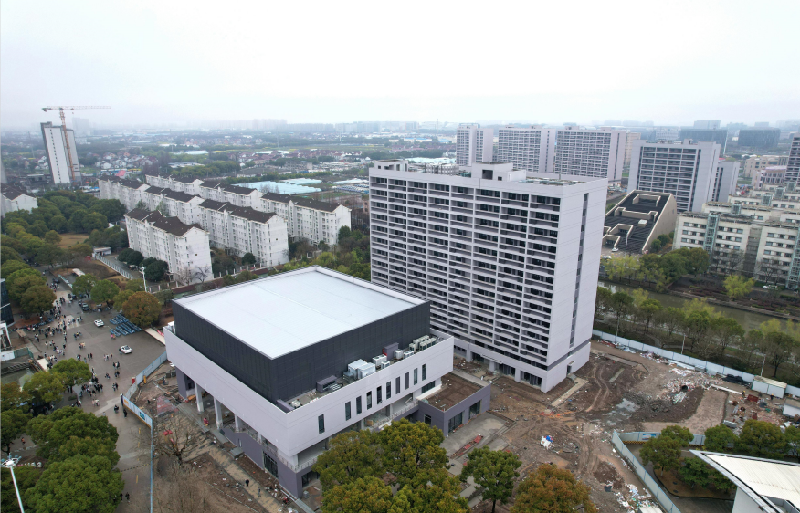 项目位于浦东新区曹路镇,地块东至顾唐路,北至秦家港路,西、南至上海立信会计金融学院规划用地,主要建设内容为新建食堂综合楼、学生公寓和教师公寓等7幢建筑。总建筑面积82500平方米,其中地上建筑面积73200平方米,地下建筑面积9300平方米,总投资约5亿。项目于2021年4月开工,预计于2023年6月竣工。