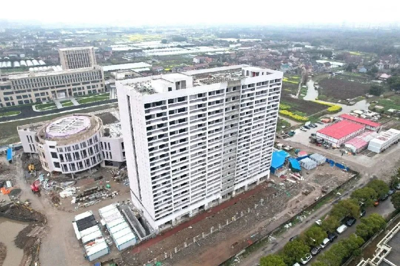 项目总建筑面积82500平方米,其中地上建筑面积73200平方米,地下建筑面积9300平方米,总投资约5亿元。项目于2021年4月开工,目前主体结构已完成,正在进行成品门安装工程、无机饰面工程、机电安装工程等,预计于2023年6月竣工。