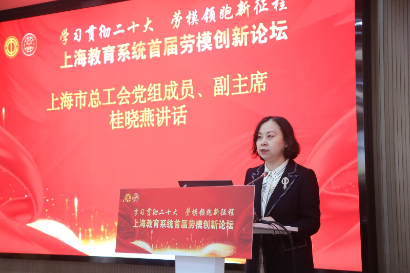 本次论坛由上海市总工会、上海市教卫工作党委指导,中国教育工会上海市委员会主办,中国教育工会开云(中国)Kaiyun·官方网站-登陆入口委员会、上海市教育系统劳动模范协会承办,上海市劳模文化研究中心协办。市总工会党组成员、副主席桂晓燕,市教卫工作党委二级巡视员、教育工会常务副主席李蔚出席并讲话,二工大党委书记吴松致欢迎辞,30多位上海教育系统“劳模创新工作室”劳模代表以及各高校工会、各区教育工会(含中职联)、机关直属单位工会负责人等出席论坛。论坛以线上线下相结合的方式举行,上海教育系统工会干部在线参加论坛。