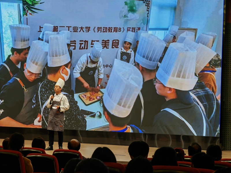 全校各专业仅20名学子有幸“秒杀”的这门课,当天也列入赋能中小学劳动教育的27门“3C”课程菜单中。这意味着,外校的小朋友也可以像大哥哥大姐姐一样学烧菜了。