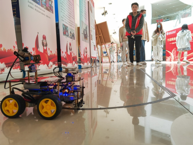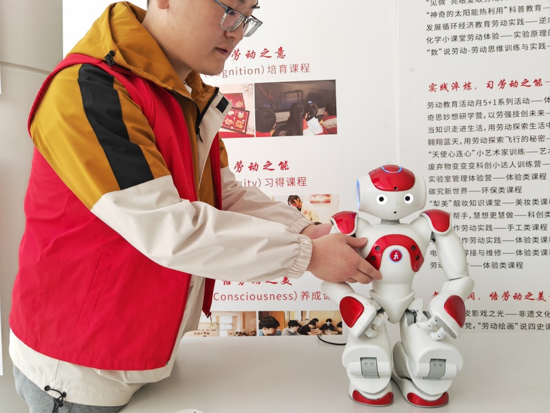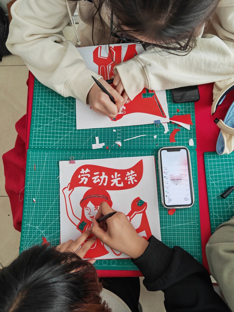 从冷菜拼盘、避障小车到练着五禽戏的机器人,这些劳动育人成果在交流展演中各显神通。智控学院开展创造性劳动实践,展示了学生自主设计制作的各式航模;能材学院带领现场师生观众,领略了使用新型材料——光子晶体制作走马灯的全过程;外文学院则将中华传统文化与劳育相结合,用一幅幅精美的非遗剪纸作品呈现校园地标美景;数统学院发挥数学思维,采用AI绘制劳模画像形式,引导学生感悟劳模精神和劳动精神。