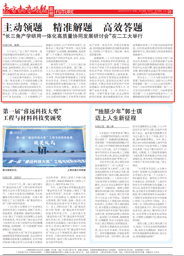 《东方教育时报》:“长三角产学研用一体化高质量协同发展研讨会”在二工大举行