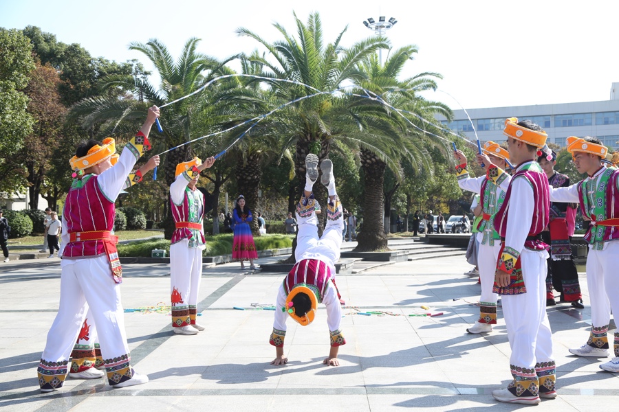 当天下午,在民族文艺表演中,各民族学生代表身着哈萨克族、藏族、维吾尔族、朝鲜族等绚丽多姿的民族服饰,通过民族歌舞、民族乐器、合唱与走秀表演不断掀起现场高潮,吹起了一场最炫“民族风”。