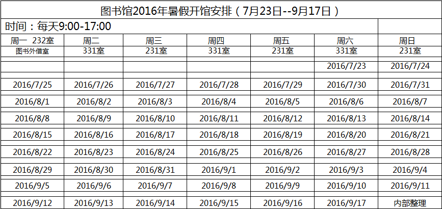 各位老师、同学:按照学校《关于2016年暑假放假及相关工作安排的通知》的要求,现将我部门暑假值班情况