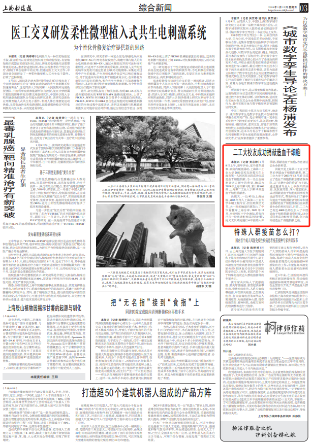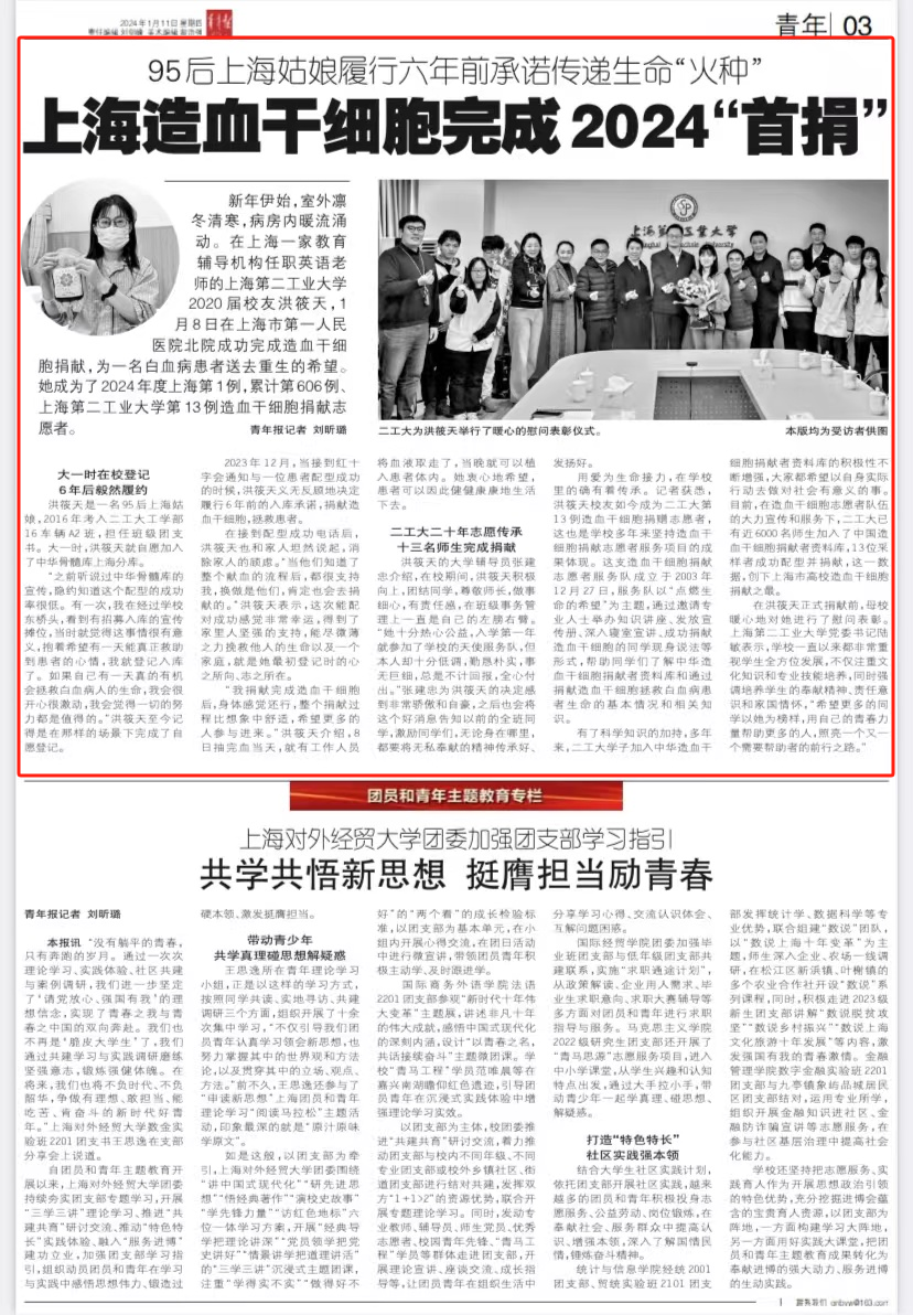 上海教育新闻网:2024年上海首捐!二工大校友洪筱天履行6年前承诺,成功捐献造血干细胞