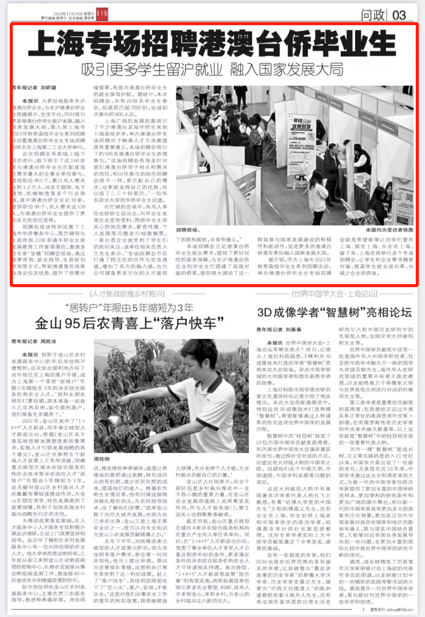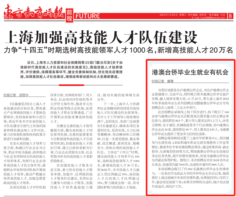 文汇APP:2600多名毕业生投出7000余份简历,达成初步意向约800人次,上海港澳台侨毕业生专场招聘举行