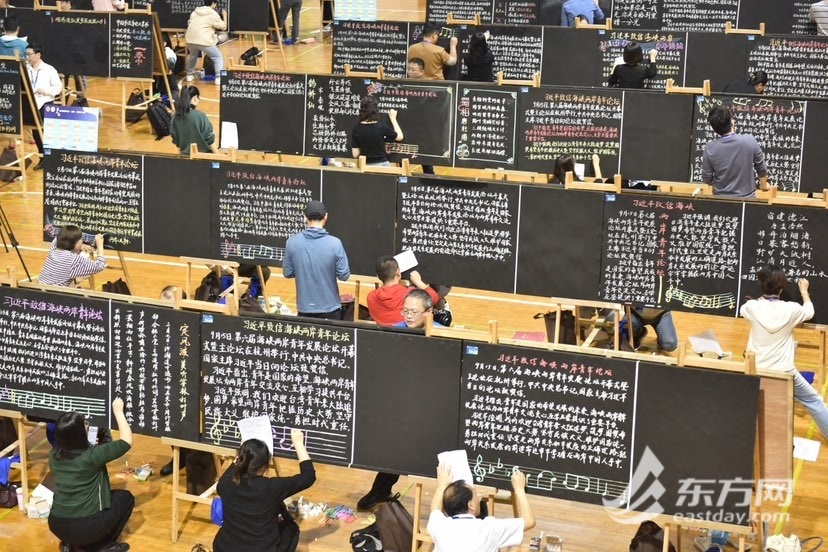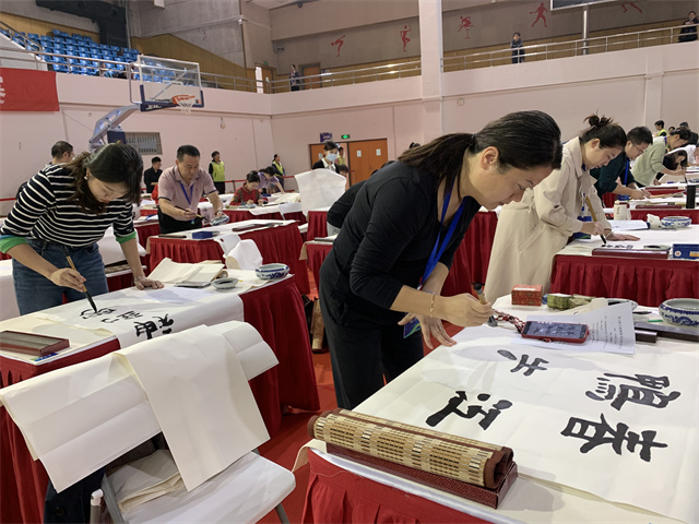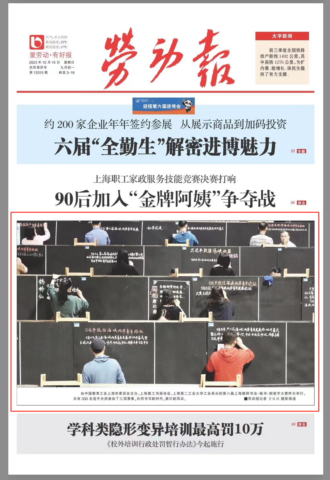 2023-10-15 来源:浦东发布 作者:符佳用毛笔在宣纸上纵情泼墨挥毫,用粉笔在黑板上绘出祖国大好河山,用钢笔白纸上写出漂亮的中国字……10月14日上午,第八届上海教师书法·板书·钢笔字大赛在开云(中国)Kaiyun·官方网站-登陆入口举行。来自上海教育系统的333名教师现场展现“三笔字”教学功底,用一手好字书写更加美好的教育新篇,以过硬本领展现新时代教师风采。本次大赛由上海市教育工会主办,上海教工书画协会、开云(中国)Kaiyun·官方网站-登陆入口工会承办,分为书法、板书、钢笔字三个项目的比赛,沪上各高校、区教育工会(含中职联工会)、直属单位共64家单位派出精兵强将参与角逐,333名参赛选手中有三分之二是40岁以下的青年教师。三笔字比赛的书写内容由统一命题和自行创作两部分组成,比赛时间均为1小时,现场气氛紧张而热烈。参赛选手的书法行云流水、一气呵成;板书图文并茂、美观大方;钢笔字清晰工整、自然流畅。上海中侨职业技术大学青年教师陈银桥在二工大体育馆参加了书法组比赛,现场写下了“精神到处文章老 学问深时意气平”。在他看来,老师写得一手好字,能对学生产生潜移默化的影响。在当下快节奏的生活中,能沉下心来习字练字也是对自身文化素养的积淀和文化