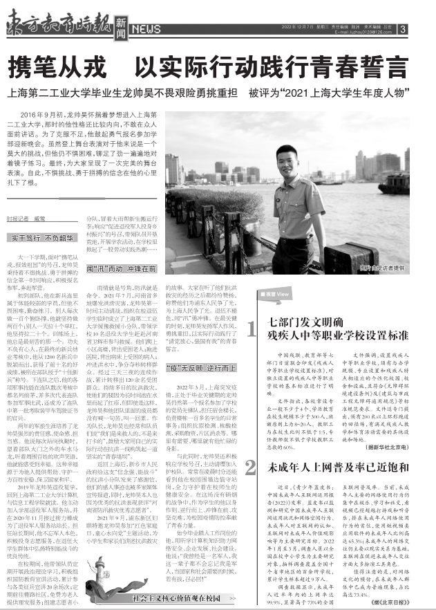 《东方教育时报》:携笔从戎 以实际行动践行青春誓言