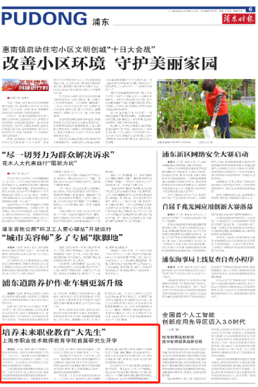 《浦东时报》:培养未来职业教育“大先生” 上海市职业技术教师教育学院首届研究生开学